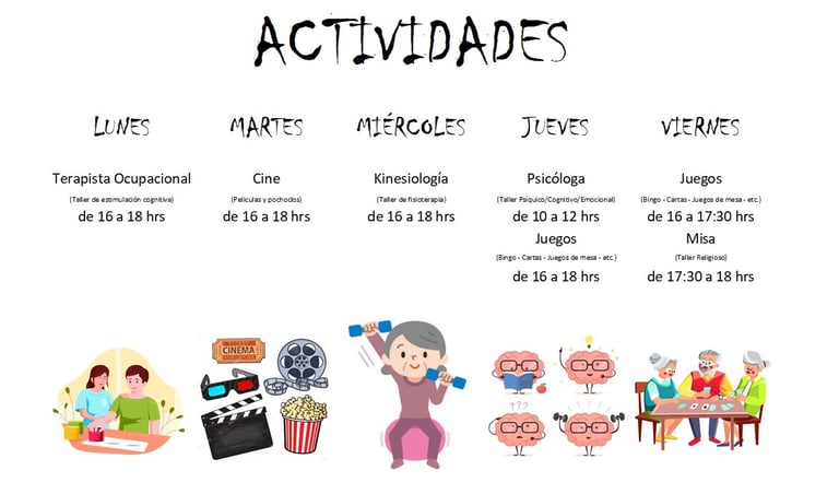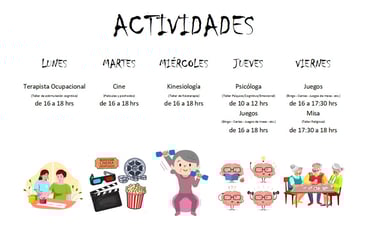 Espacios pensados para la asistencia de las personas mayores. Además de brindar atención a través de las diferentes especialidades del campo de la salud, realizamos un conjunto de actividades y talleres tendientes a estimular los aspectos más saludables.